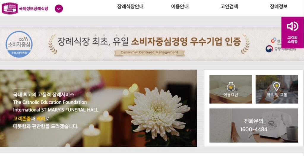 특징: 장례식장 최초, 유일 소비자중심경영 우수기업 인증을 받은 장례식장 입니다.