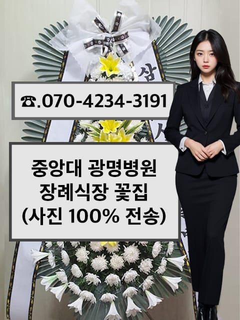 중앙대 광명병원 장례식장 전화번호 : 02-2610-9472 주소: 경기도 광명시 덕안로 110 (일직동 501) 빈소정보: 중앙대 광명병원 장례식장 빈소정보 <- 클릭! <출처: 광명 중앙병원 장례식장 홈페이지> < 근조화환 주문 방법 안내> 화환 주문 전용번호: 070-4234-3191 (※근조화환 주문 전용!) 홈페이지 화환사진보기 위의 홈페이지에서 화환사진과 함께 자세한 설명도 확인하실 수 있습니다. 저희 꽃집은  장례식장 화환을 전문으로...